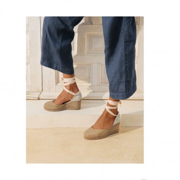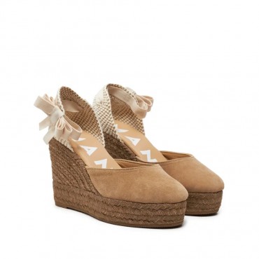 Manebí heart-shaped wedges are a versatile style for hot days: extremely comfortable and feminine at the same time! Crafted from the softest suede, they feature a natural woven jute espadrilla wedge and a rubber sole to ensure a firm foot. They ended up with matching wrap-up ankle ties