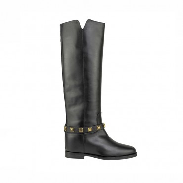 -50% New Collection VIA ROMA 15 black leather inner wedge boot with ankle studs Regular price €399.00 -50% Price €199.50