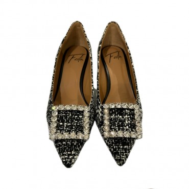 Roberto Festa Decollete' in tweed fabric with square buckle evilly crystals