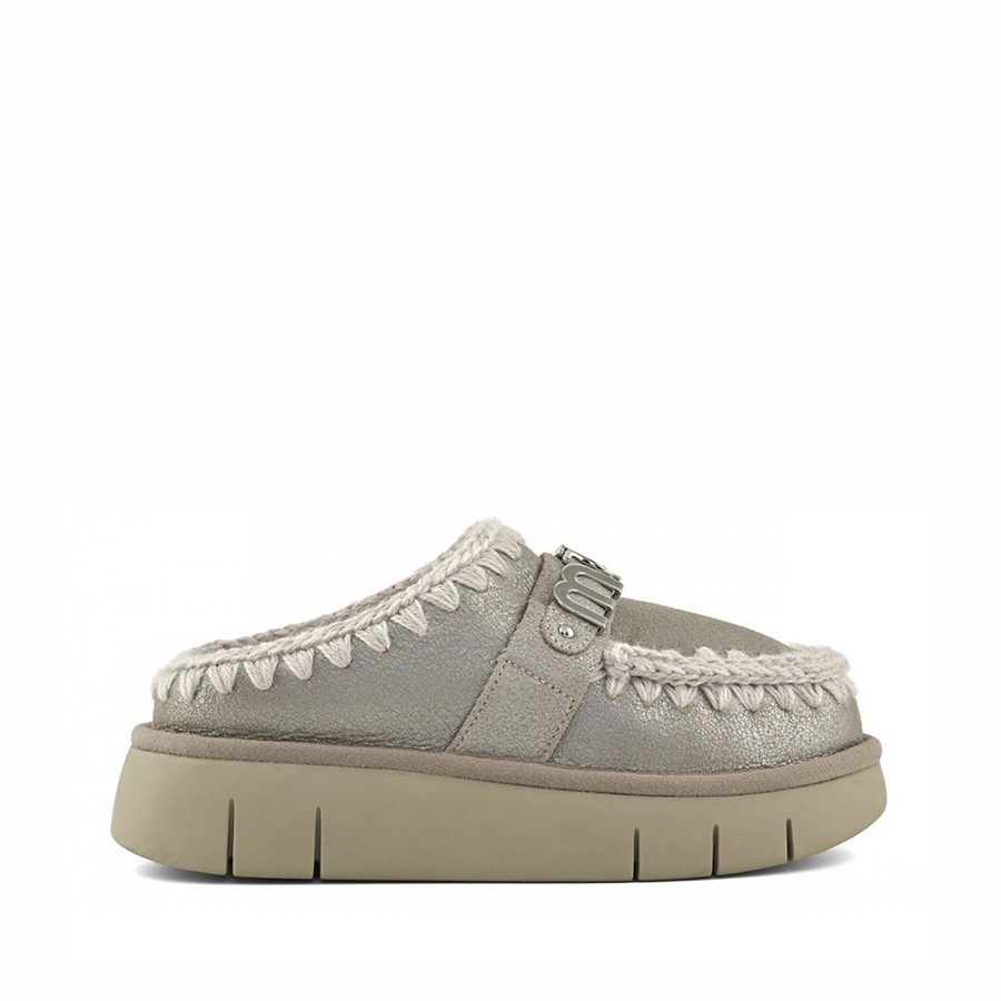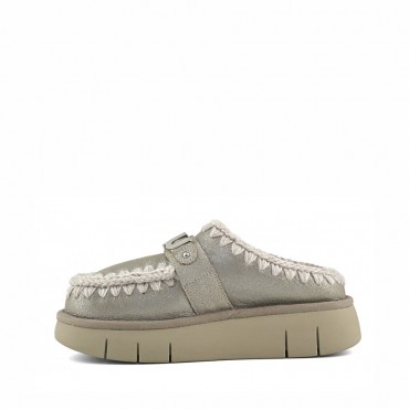 Mou clog sheepskin bounce metal logo Stone Metallic STME