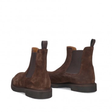 Men's Chelsea Boots from the Cerbero brand, ideal for the fall/winter 2025 season. Made of high quality suede, they have a refined brown shade that easily adapts to various styles. The structure is characterized by a slip-on design, with side elastics that offer comfort and practicality. The sole is robust, ensuring durability and stability. These ankle boots are designed for a man who is looking for elegance and functionality in his footwear.