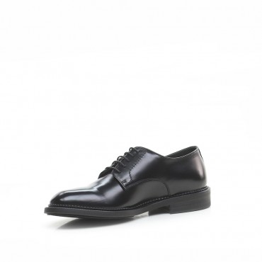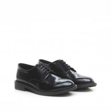Lace-uped in black brushed calfskin with a classic vintage Pantanetti effect.