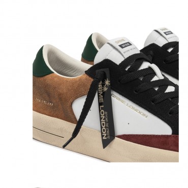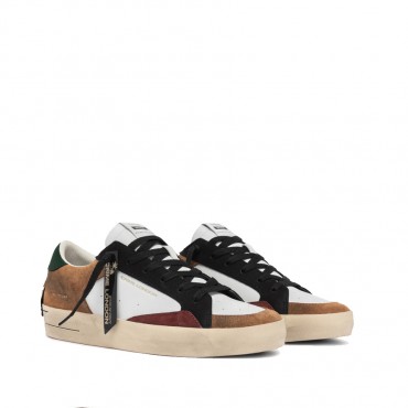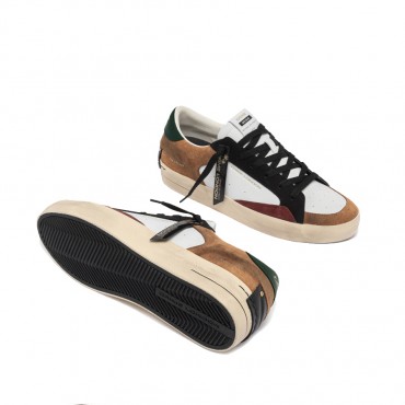 Sneaker made with high quality materials Made in Italy White leather and caramel suede upper, burgundy suede details Dark green leather heel White leather tongue with logated leather label Patch.
