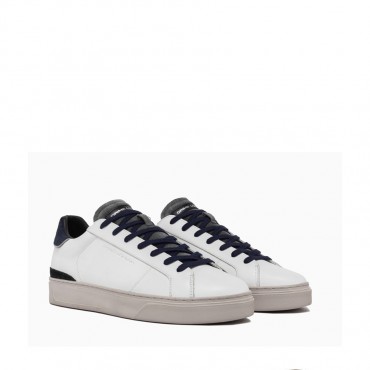 Sneaker made with high quality materials Made in Italy White leather upper, black suede details Dark blue suede heel Dark gray suede tongue with logated leather label Dark blue cotton laces Leather and fabric lining MK Light sole, 2.5 - 3.5 cm high