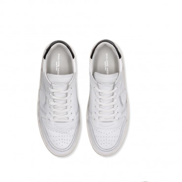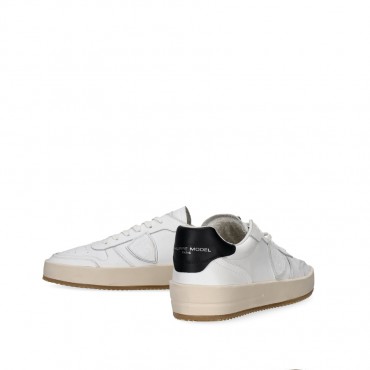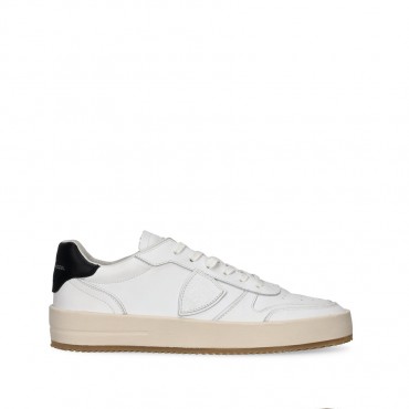 New up to date version of the Nice sneaker with lines inspired by vintage basketball models and total black upper in suede and leather. The lived effect of the materials and the contrasting white patch make it perfect for casual occasions in the city. The design is completed by a sole with handcrafted bandage.