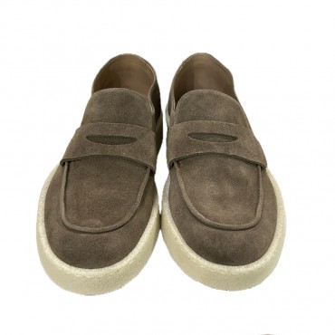 Tortoira-colored suede slip-on shoe made in delavè effect.