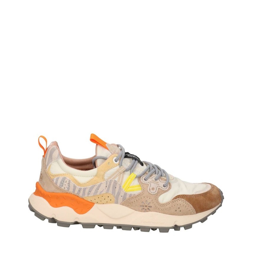 The Flower Mountain Yamano 3 sneakers combine outdoor spirit and urban style in an iconic and contemporary design. The upper is made of yellow suede combined with nylon in beige tones, for a dynamic and refined look at the same time.