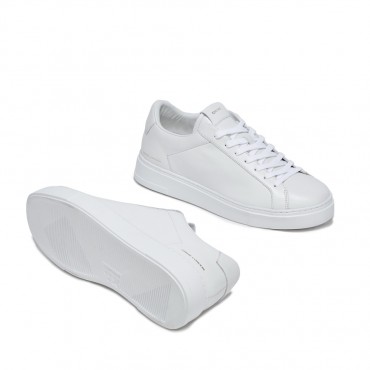 Sneaker made with high quality materials Made in Italy Upper in white calf leather with heel in hammered leather tone Tab with logata leather label White cotton laces Leather and fabric lining