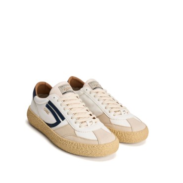 Vintage sneaker made of eco-leather with a vulcanized rubber bottom. White/navy blue
