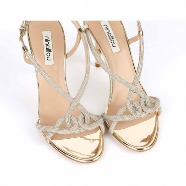 Model women's sandal in mirror-effect platinum leather, embroidered with rhinestones. Essential and refined lines are aimed at enhancing the feminine silhouette of all women. Slender from the heel, this jeweled sandal ensures an elegant and sophisticated touch to any look.