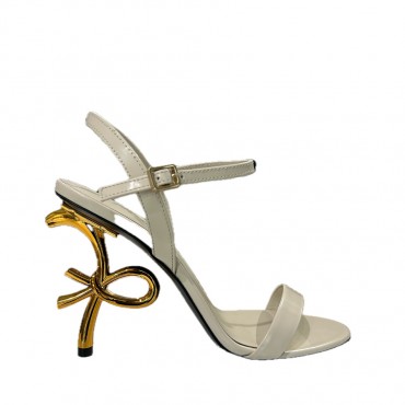 Women's sandal with a bold and sophisticated design, made of stone brushed leather, with a 10 cm sculpted heel that forms the gold RF logo. Featuring a high ankle strap and a toe band, this sandal embodies the elegance and distinctive style of the Roberto Festa signature, a glamorous and refined addition to any special occasion.