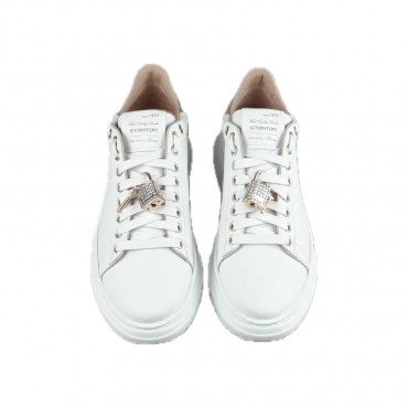 Women's up bottom sneaker, in leather with removable jewellery details on the laces, removable insole, extralight wedge sole cm 5.