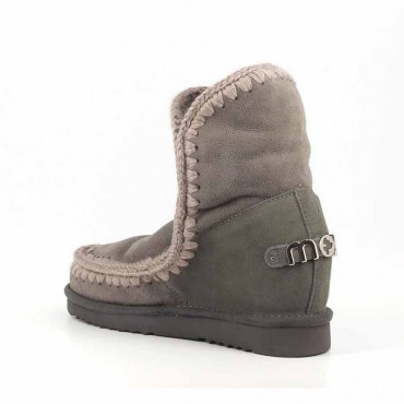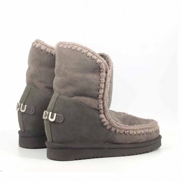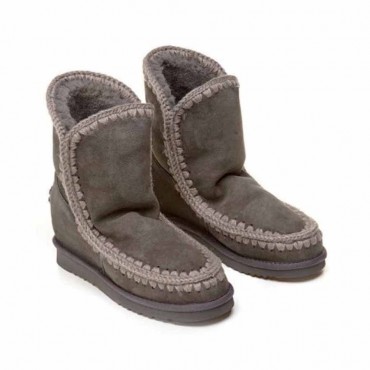 eskimo model in the short version which is the short version that is added to the iconic eskimo collection with an internal wedge . Handmade model in double-faced sheepskin in charcoal gray (charcoal cha) extraordinarily warm with matching colored crochet wool stitching with a light contrasting effect. This eye-catching model features a reinforced heel, a durable EVA sole and a 5 cm internal wedge that gives a slimmer silhouette and slims the figure. Incredibly comfortable to wear. Boot height 22 cm. With support shell, reinforced heel and durable rubber and EVA outsole. Regular fit.