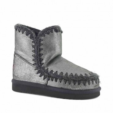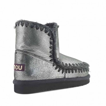 Modello tronchetto donna eskimo 18 è la versione petite che si aggiunge alla iconica collezione eskimo. Modello realizzato a mano in montone double-face colore tinta unita metallizzata lucido con cuciture in lana in tinta lavorate all'uncinetto, conchiglia di sostegno e resistente suola esterna in gomma ed EVA. Altezza 18 centimetri. Vestibilità regolare