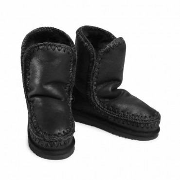 Eskimo women's ankle boot model 24 is the iconic version of the eskimo collection. Handmade model in beautiful and warm double-face natural sheepskin black color (Cbkg) with an elegant upper given by a slight crunched effect. This new model features the logo with embedded rhinestones. With crochet wool stitching, support shell, reinforced heel and durable rubber and EVA outsole. Height 24cm. Regular fit.