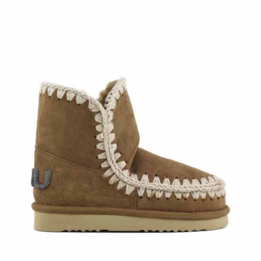 The eskimo 18 is the petite version that joins the iconic eskimo collection. The best-selling eskimo 18 model is now available with the new glitter logo for an extra touch of style. Handcrafted in double-faced sheepskin in cognac brown (COG), this model is incredibly warm with crocheted wool stitching, a supportive shell, a reinforced heel and a durable rubber and EVA outsole. Incredibly comfortable and durable. Height 18 centimetres. Regular fit.
