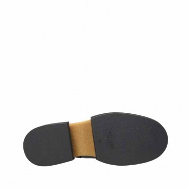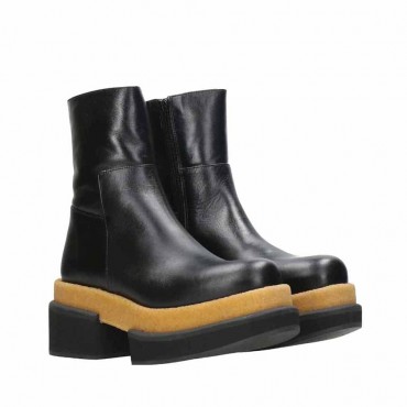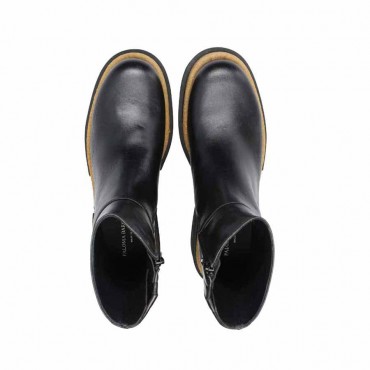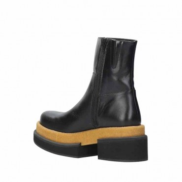 Model Basil women's ankle boot in black leather. Easy fit by zip on the inside and by the elastic on the sides. Round shape and rock bottom with a distinctive design in EVA and double level contrasting para: heel height 7.5 cm plat front 4.7 cm. Can be used not only under trousers but also under dresses and skirts to play down a romantic look.