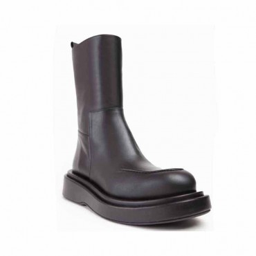 Model Basil women's ankle boot in black leather. Easy fit by zip on the inside. Round shape and high bottom with distinctive EVA design: Front platform height: 2.5 cm Rear platform height: 4.5 cm Legs height: 22 cm. Can be used not only under trousers but also under dresses and skirts to play down a romantic look.
