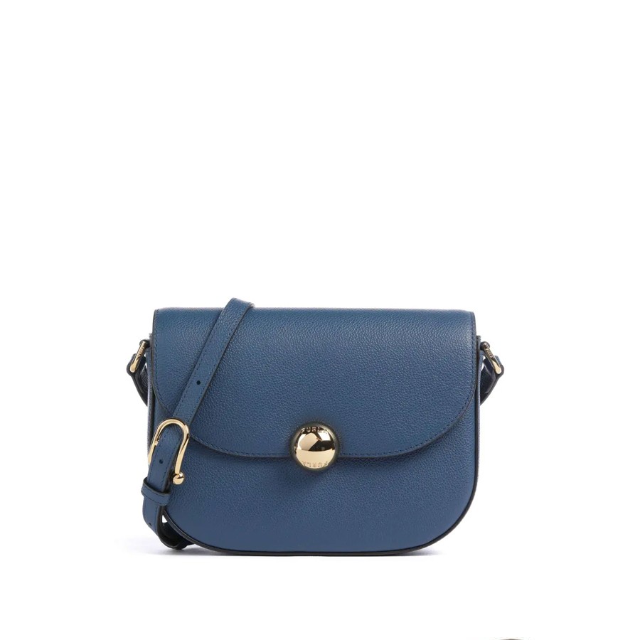 Perfect crossbody with a timeless allure: Furla Moonlight stands out for its saddle design with rounded soft lines. The body of the bag is entirely made of fine leather with a light hammered finish. The small and compact format is made distinctive by the closure with flap and magnetic button decorated with the iconic Ball logo. - Internal pocket with zip closure - Adjustable leather shoulder strap - Printed Furla logo