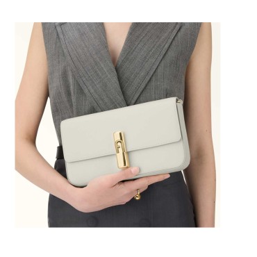 The versatile and contemporary design defines the lines of the Furla Iride crossbody. The body of the compact bag is made of fine hammered leather, combined with the adjustable and removable shoulder strap that allows multiple wearing options. The magnetic closure is embellished with the cylindrical metal hardware signed with the iconic Arco Furla logo. - Inner pocket with zip closure - Printed Furla logo