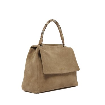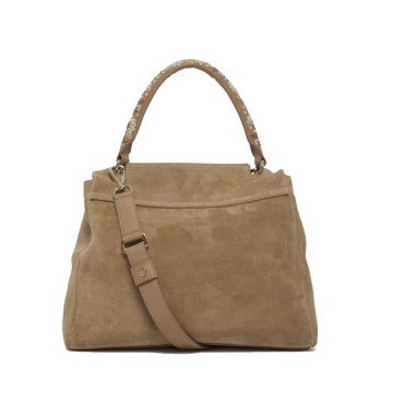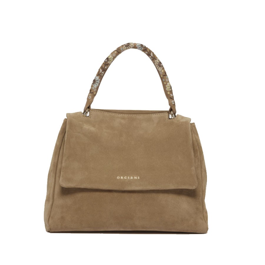 ORCIANI Sveva Peach Flowers Midi suede shoulder bag with shoulder strap