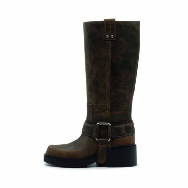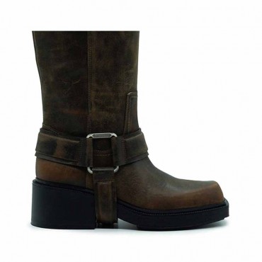 Fray tan gaucho boots model made of vintage calfskin, with removable strap, squared loops and embossed logos.