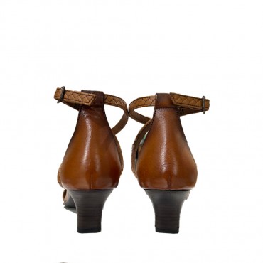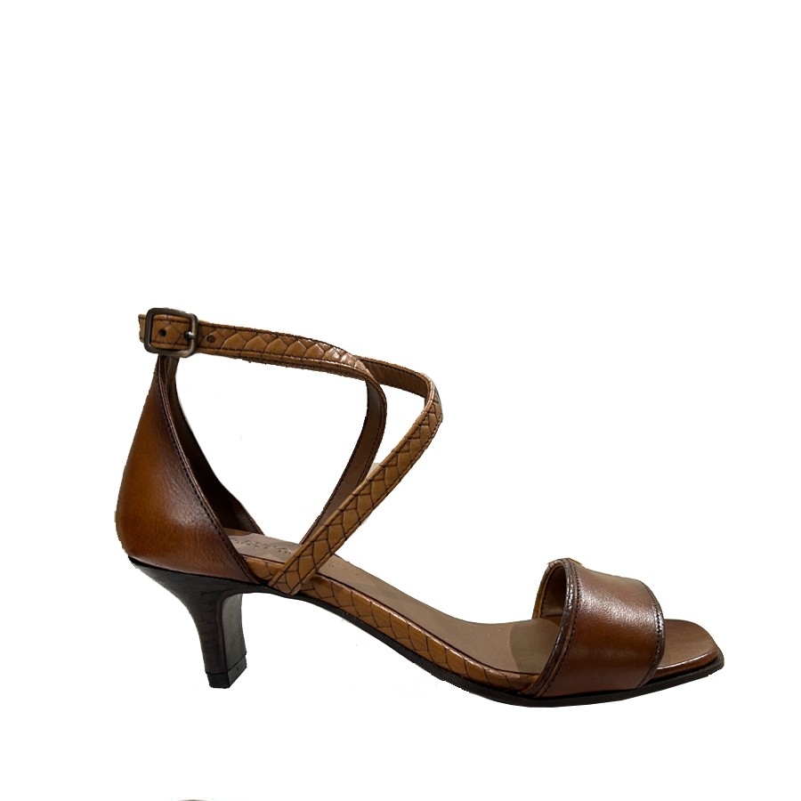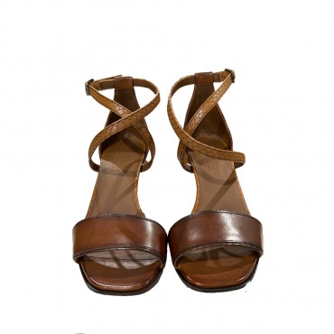 Sandal with cross straps Pantanetti brown, made of aged leather and in python print calfskin.