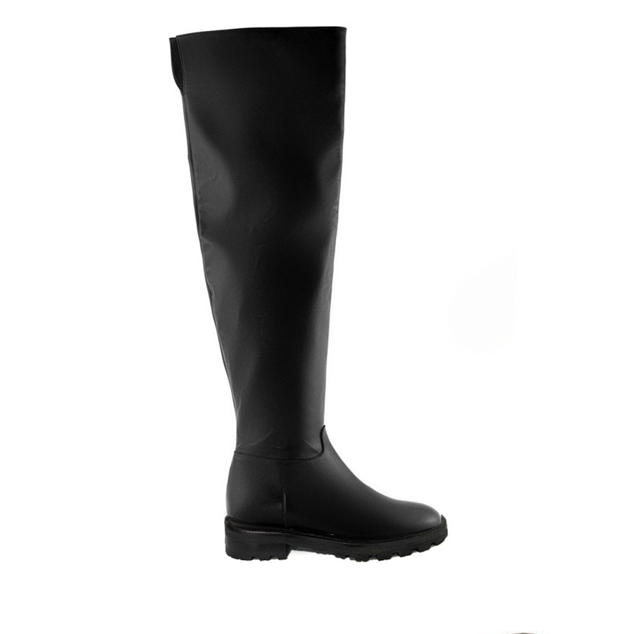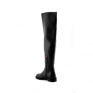 Luz high boot in black leather, round toe, side zip closure, back slit for easy fit, leather sole with logo.