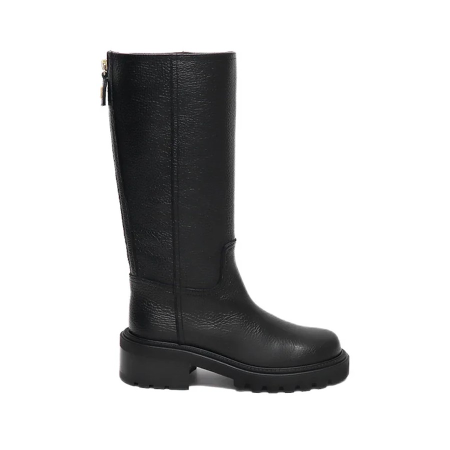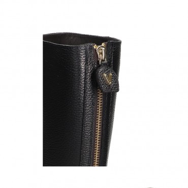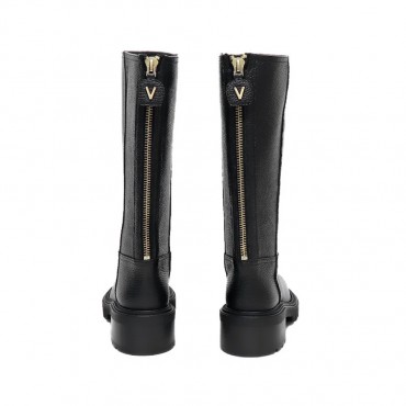 The firefighter's boot in Via Roma 15, revisited in an elegant and refined key, is a must-have that cannot be missing in the wardrobe. The black leather upper is enhanced by the golden zip behind the accessory boot with tongue on which the iconic metal "V" stands out, a precious detail that illuminates the design without giving up the cleanliness of the lines. Leather interior and insole guarantee breathability and a soft fit.