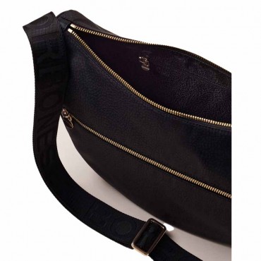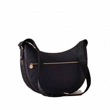 Borbonese bag Luna bag middle Hobo fabric Op dark black