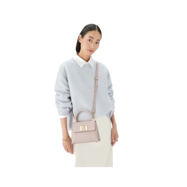 Perfect for holding the essentials: Furla 1927 is a mini bag to carry by hand. In elegant leather with a light garnet texture, it is decorated with the distinctive swivel closure with tab and the iconic Arco Furla logo. - Internal gusset construction with wall pocket and zip closure - Open external pocket on the back - Adjustable and removable matching leather shoulder strap - Metal feet