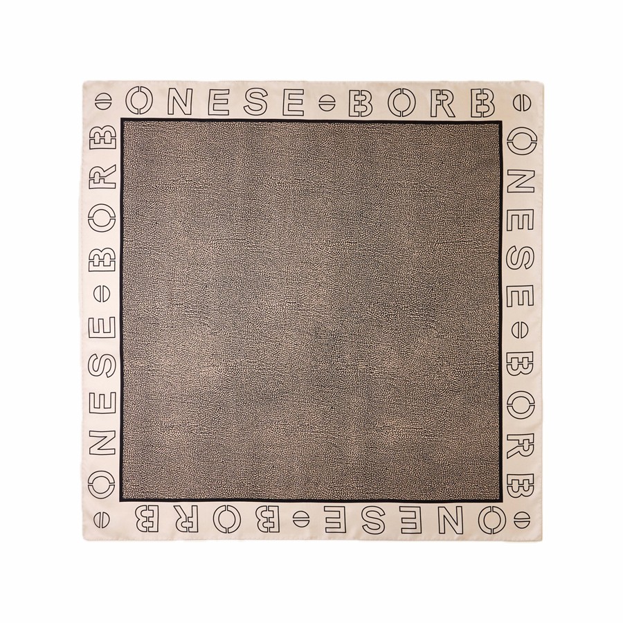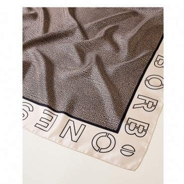 Borbonese Oplogo outline chantilly cream silk twill scarf