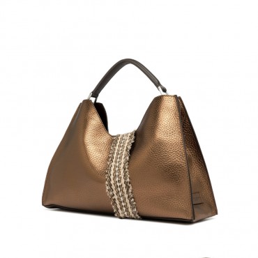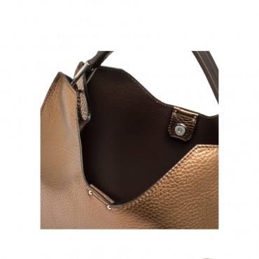 Aurora by Gianni Chiarini Florence is characterised by a trapezoidal shape. Synonymous with contemporary elegance, it is made of double grain maxi leather and enriched with metal details. Equipped with a practical adjustable and removable shoulder strap, for double portability. It also has a top closure with magnet.