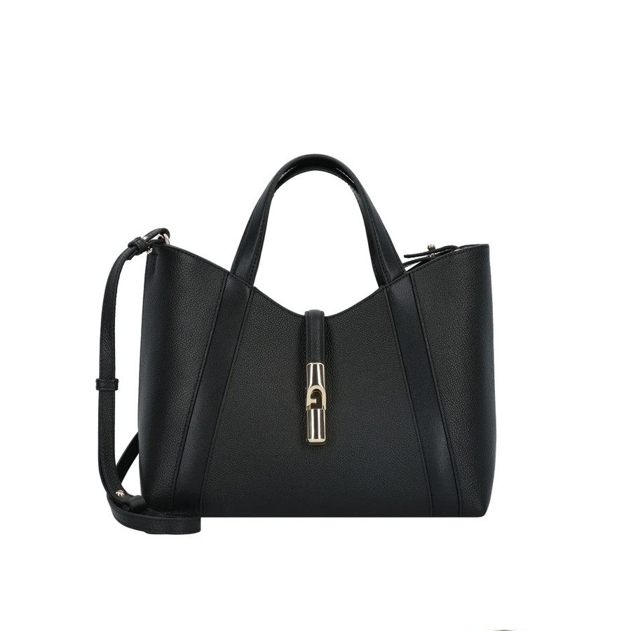 Goccia S Ciliegia Furla handbag, elegant and refined smooth leather bag, with double handles and adjustable and removable shoulder strap. Compartment with closure with external band, lined interior and with pocket.