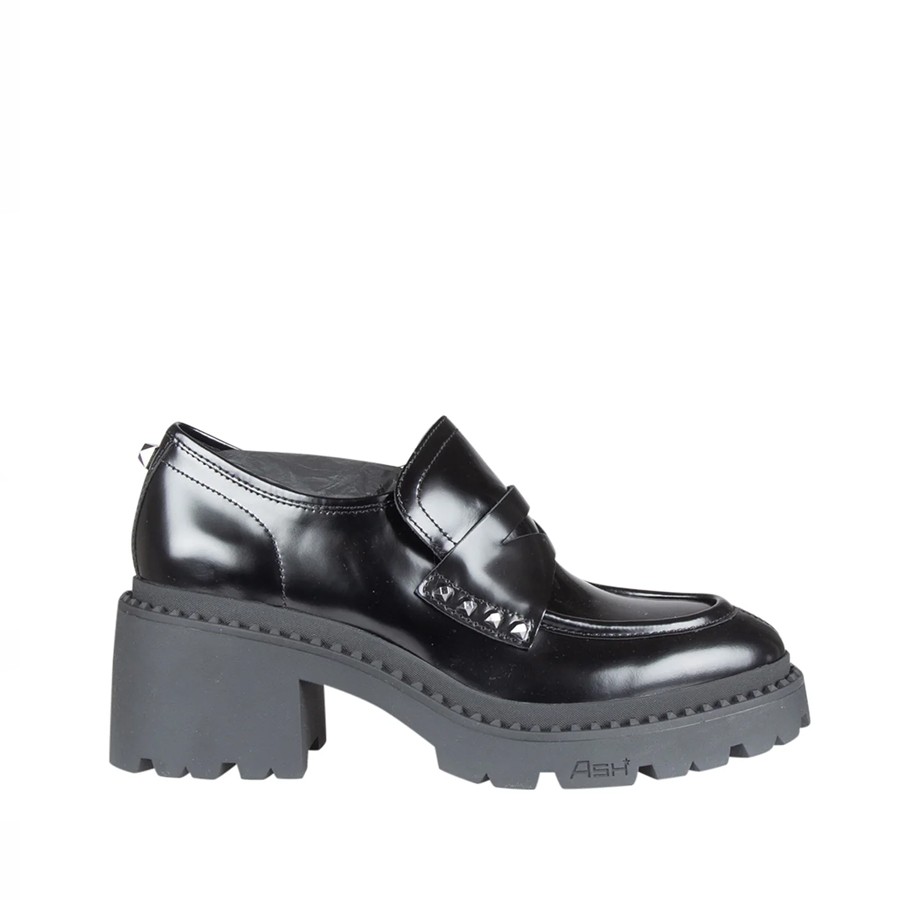 copy of ASH women's heeled moccasin NELSON STUD 02 in black leather