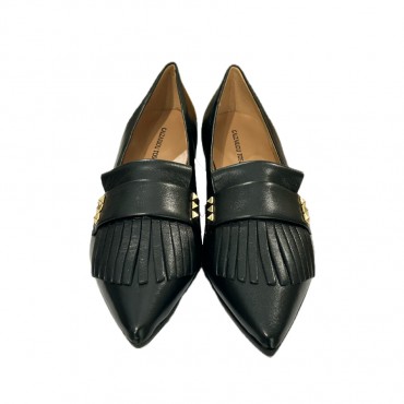 Women's ballerina in genuine leather inside and outside, with fringes and side studs