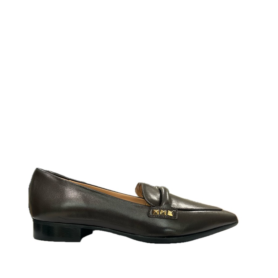 Women's ballerina in internal and external genuine leather, with buckle and side studs