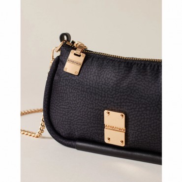Borbonese mini Cahier shoulder bag in OP fabric in dark black