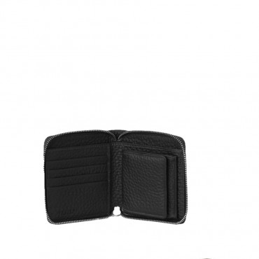 Length: 11 cm height: 12 cm hammered leather wallet anti-fraud RFID protection zip closure banknote compartment four compartments card holder coin holder with snap button details palladium finish