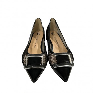 Comfortable black verlux leather mesh and ballerina and transparent plexy accessory