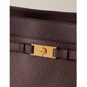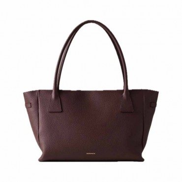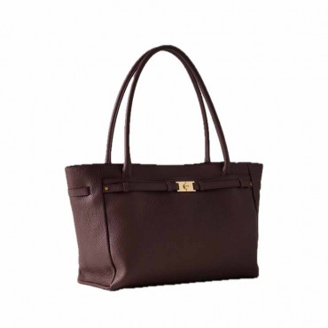 Large women's shopping bag model "La Torinese" in brown drummed printed calfskin with metal zip closure and logoed zip pull. Strap embellished with a screw plate on the external pocket closed with two invisible magnets.