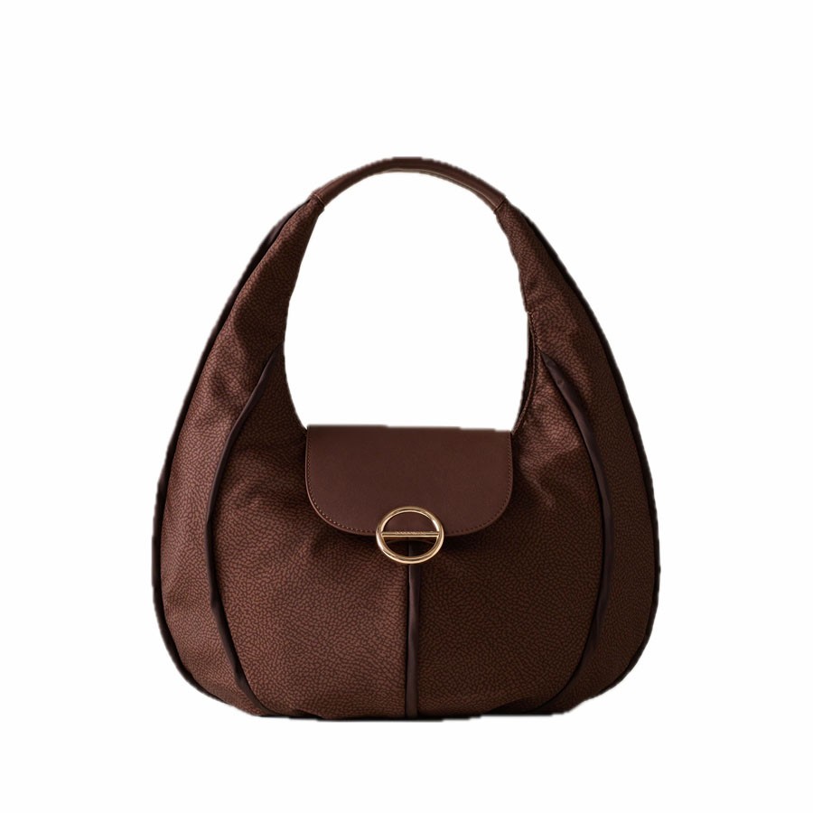 The Borbonese Cottage Small Hobo Bag in OP Noisette fabric is a refined and functional accessory, designed to accompany you every moment of the day. Crafted from recycled fabric with OP print, it is embellished with leather details and plain nylon trim, for a design that combines elegance and practicality.