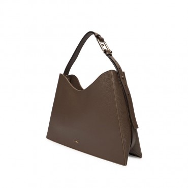 Geometric, clear and delicate lines define the design of the Furla Nuvola hobo bag, in maxi size made of soft leather with a garnet finish for a truly natural touch. The large and spacious interior is organized with two compartments with magnetic closure and zipped central pocket to offer perfect management of personal belongings. The adjustable and removable handle is made distinctive by the new interpretation of the Arcosfera hardwear that combines the iconic Arco Furla logo with the original round element of the brand. - Mushroom side buttons to adjust the handle - Furla logo punched on the back