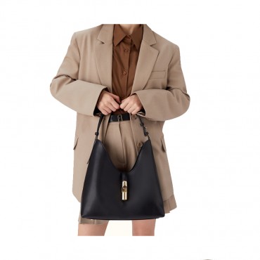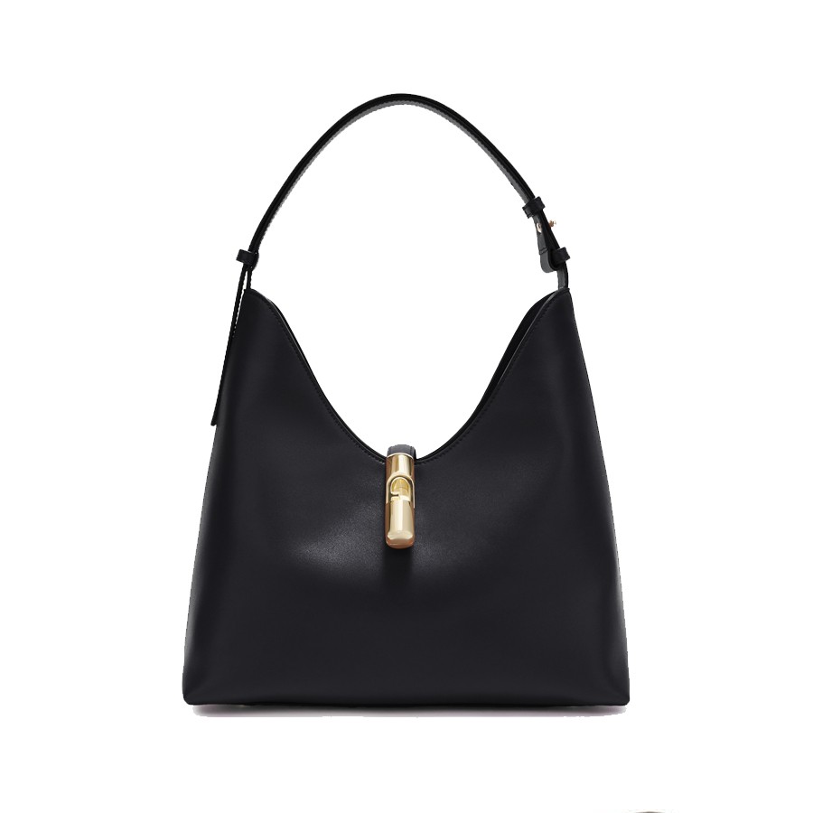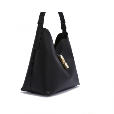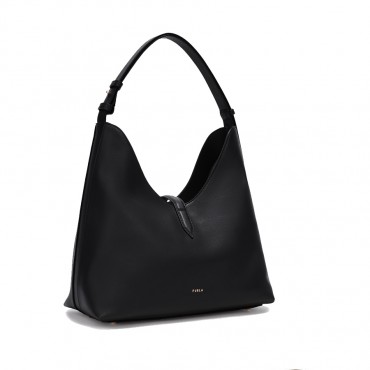 The Furla Goccia hobo bag is distinguished by its soft and unstructured silhouette made of smooth leather with a silky and rich hand. The bag is enriched by a matching band embellished with the new cyclindric hardware with a weight decorated with the iconic Arco Furla logo that keeps the model closed. The open interior is large and spacious to hold your essentials. - Internal pocket open to the wall - Internal pocket with zip closure - Adjustable leather handle