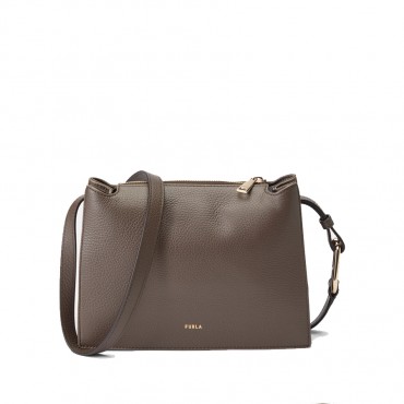 Soft and delicate allure for the small crossbody Furla Nuvola. Made of fine hammered leather, it has geometric and square lines. Completed inside by two open compartments with a central cross-frame, it closes with the upper zip and can be worn comfortably on the shoulder or shoulder strap thanks to the removable and adjustable in length. The detail of the Arcosfera hardwear that combines the iconic Arco Furla logo with the original round element of the brand adds a unique and distinctive touch to the bag. - Internal open wall pocket - Internal pocket with zip closure - Mushroom side buttons to adjust the handle - Furla logo punched on the front