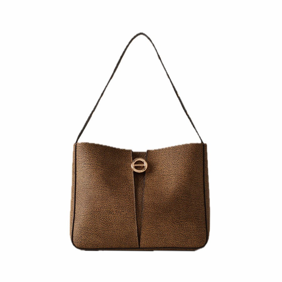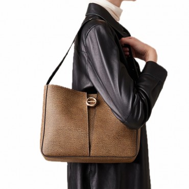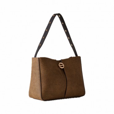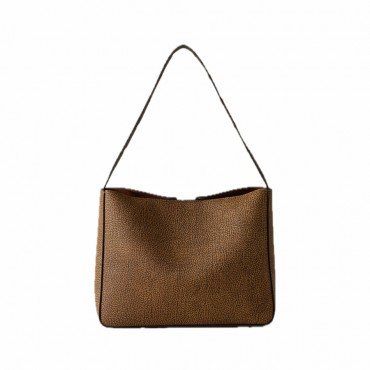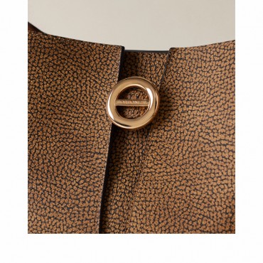 The Small Tulip OP Bucket Bag by Borbonese is a refined example of the balance between tradition and modernity. Crafted from OP coated canvas with precious leather details, it exudes a sophisticated and timeless style. The interior, lined in suede-effect fabric, features a practical organization system with an internal open pocket and two front pockets. The magnetic closure ensures comfort and security, while the light gold hardware adds a luminous and refined touch. Perfect for elegantly accompanying every moment of the day.