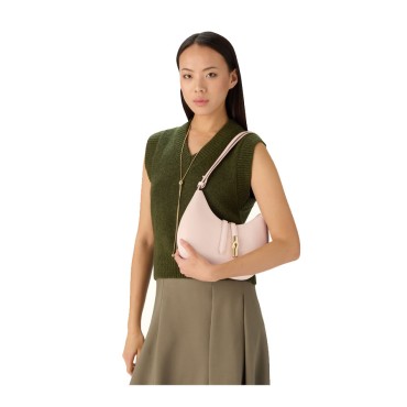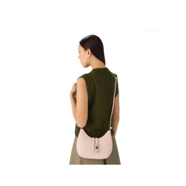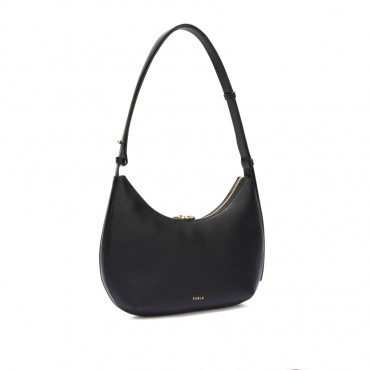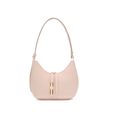 Furla Goccia is the shoulder bag with soft and sinuous lines. In a game of material contrasts between hammered leather and smooth leather details, it is shaped by a compact but spacious silhouette. The closure with double zip slider is embellished with the particular cilidrinco hardware in a glossy finish with the Arco logo on one of the two leather pullers. - Internal pocket open to the wall - Internal pocket with zip closure - Adjustable smooth leather handle