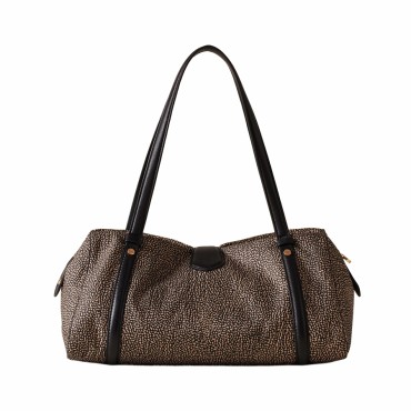 Borbonese medium shoulder bag Poche in Opnaturale fabric and black leather