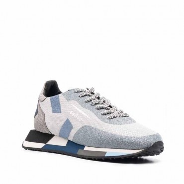 Contemporary fashion running, Ghōud's Rush Starlight model presents a minimal design characterized by geometric and lively lines. Upper in mesh and glitter with thermo-adhesive details for an unconventional look. Iconic logo printed on the side.