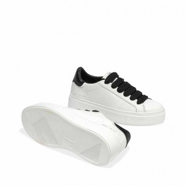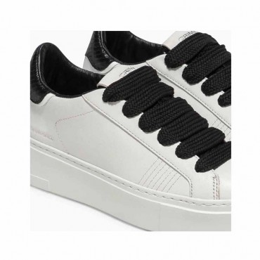 Converse women's shoe model in white leather. The Weightless Low Top women's sneaker features an upper in high quality Italian leather with a used effect. Flat cotton laces. Crime London logo embossed on the heel in black patent leather. The simple and versatile design fits perfectly to any occasion.